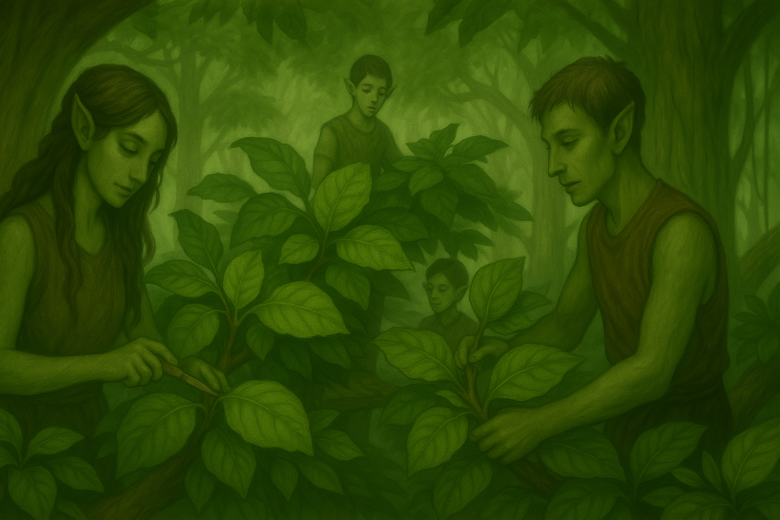 Cultivatoarea de Frunze începu să râdă. Râse ca la o glumă foarte bună pe care nu o mai auzise niciodată și era spusă foarte bine. Cultivatorii de Frunze fac și ei parte din breasla Lucrătorilor iar ponderea lor și importanța este foarte mare. Ei reprezintă jumătate din numărul Lucrătorilor și se ocupă cu procurarea și prepararea hranei pentru întreaga colonie. Hrana este formată exclusiv din frunzele care cresc în arborii pe care este construită colonia. Cea mai mare parte a coloniei nu este locuită ci reprezintă zona de cultivare a frunzelor. Cultivatorii au o răspundere foarte mare în special în recoltare deoarece trebuie să nu facă rău arborilor culegând prea multe frunze. Cei mai experimentați dintre Cultivatorii de Frunze se ocupă cu obținerea de frunze noi prin altoirea ramurilor de diferiți arbori. Așa se explică cum în prezent fiecare arbore oferă o varietate mare de frunze. Unii dintre Cultivatorii de Frunze sunt preocupați de stabilirea dietelor și construiesc rețete din diverse tipuri de frunze. În general Cultivatorii de Frunze sunt puternici, probabil acest lucru se datorează faptului că o mare parte din timp transportă hrana către adăposturile coloniștilor dar cu o dexteritate ridicată deprinsă în activitățile de altoire și de culegere a firavelor frunze.