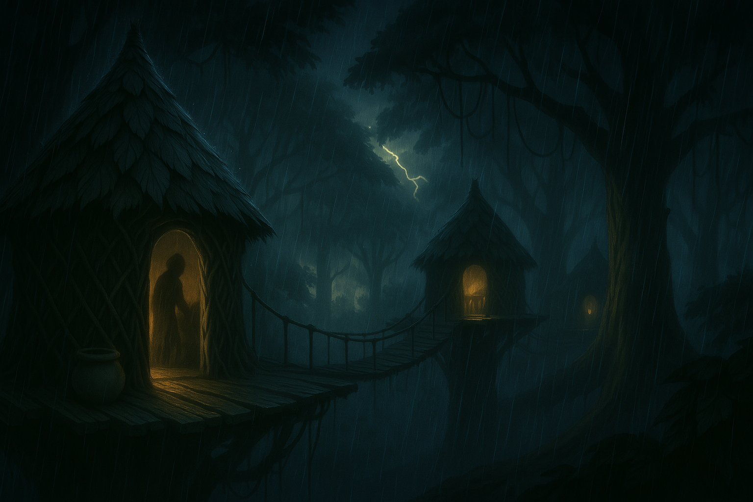 Erau afară, vântul era puternic, ploaia incepuse cu stropi foarte mari și prin aer zburau și frunze sau mici bucăți de lemn. Aron avu o surpriză, totul arăta exact așa cum își închipuise. Era și dezamăgit dar și fericit.